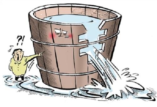 木桶定律是講一只水桶能裝多少水,這完全取決于它最短的那塊木板。這就是說任何一個組織,可能面臨的一個共同問題,即構(gòu)成組織的各個部分往往是優(yōu)劣不齊的,而劣勢部分往往決定整個組織的水平。水桶定律與酒與污水定律不同,后者討論的是組織中的破壞力量,最短的木板卻是組織中有用的一個部分,只不過比其他部分差一些,你不能把它們當(dāng)成糟糕的而扔掉。強弱只是相對而言的,無法消除,問題在于你容忍這種弱點到什么程度,如果嚴(yán)重到成為阻礙工作的瓶頸,你就不得不有所動作。