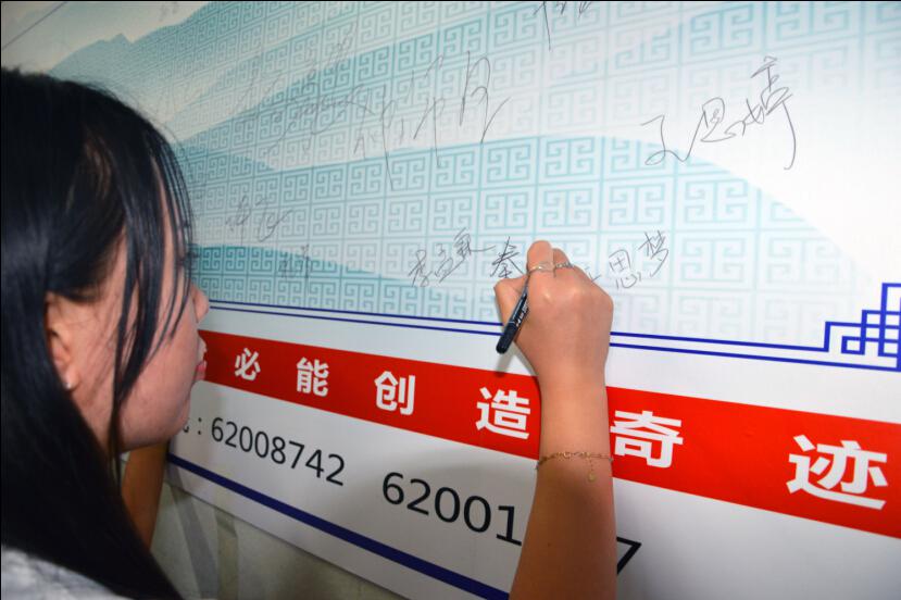 考生將目標(biāo)和心愿寫在留言板上并簽名立志