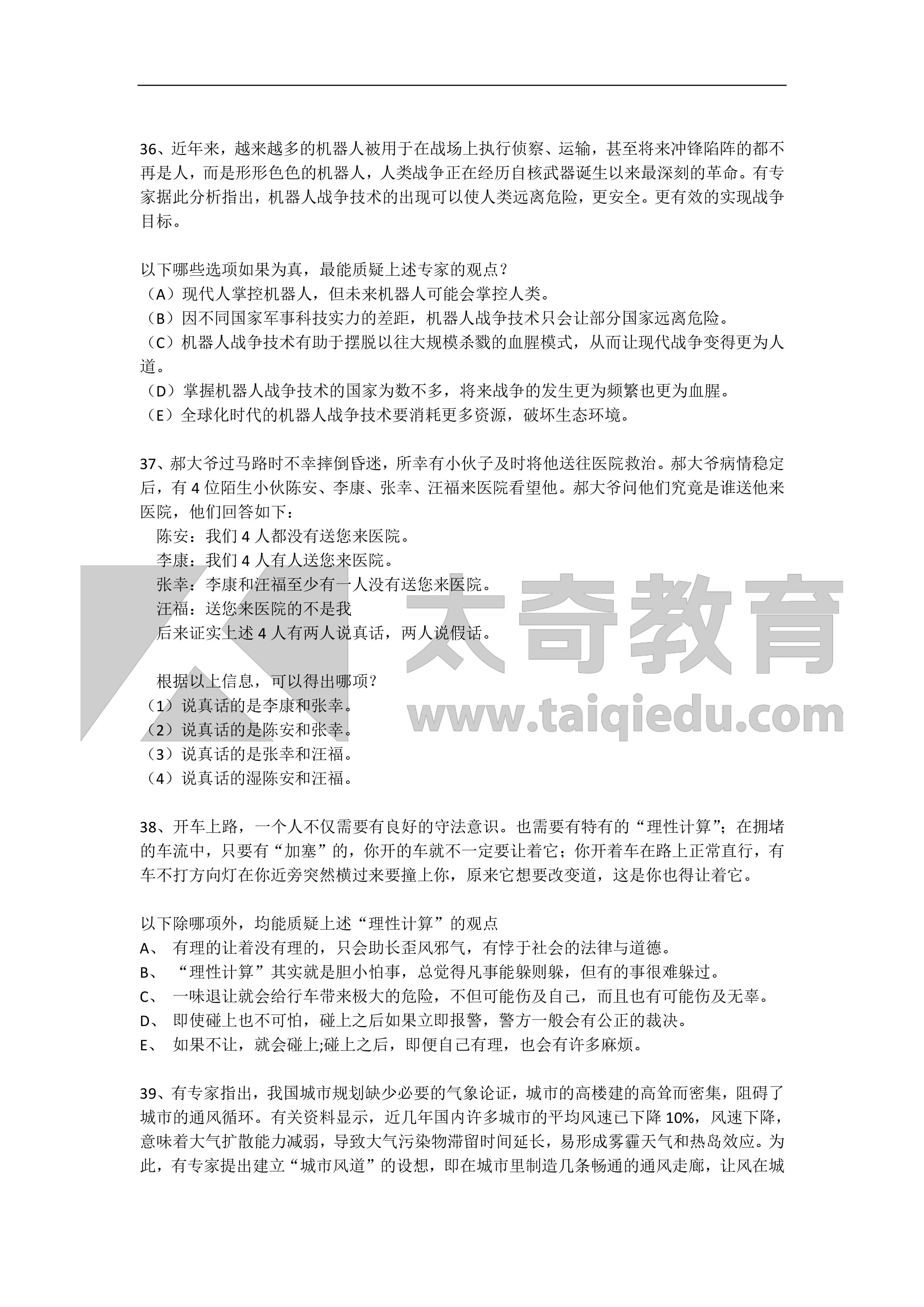 2016MBA管理類聯(lián)考邏輯真題(4)