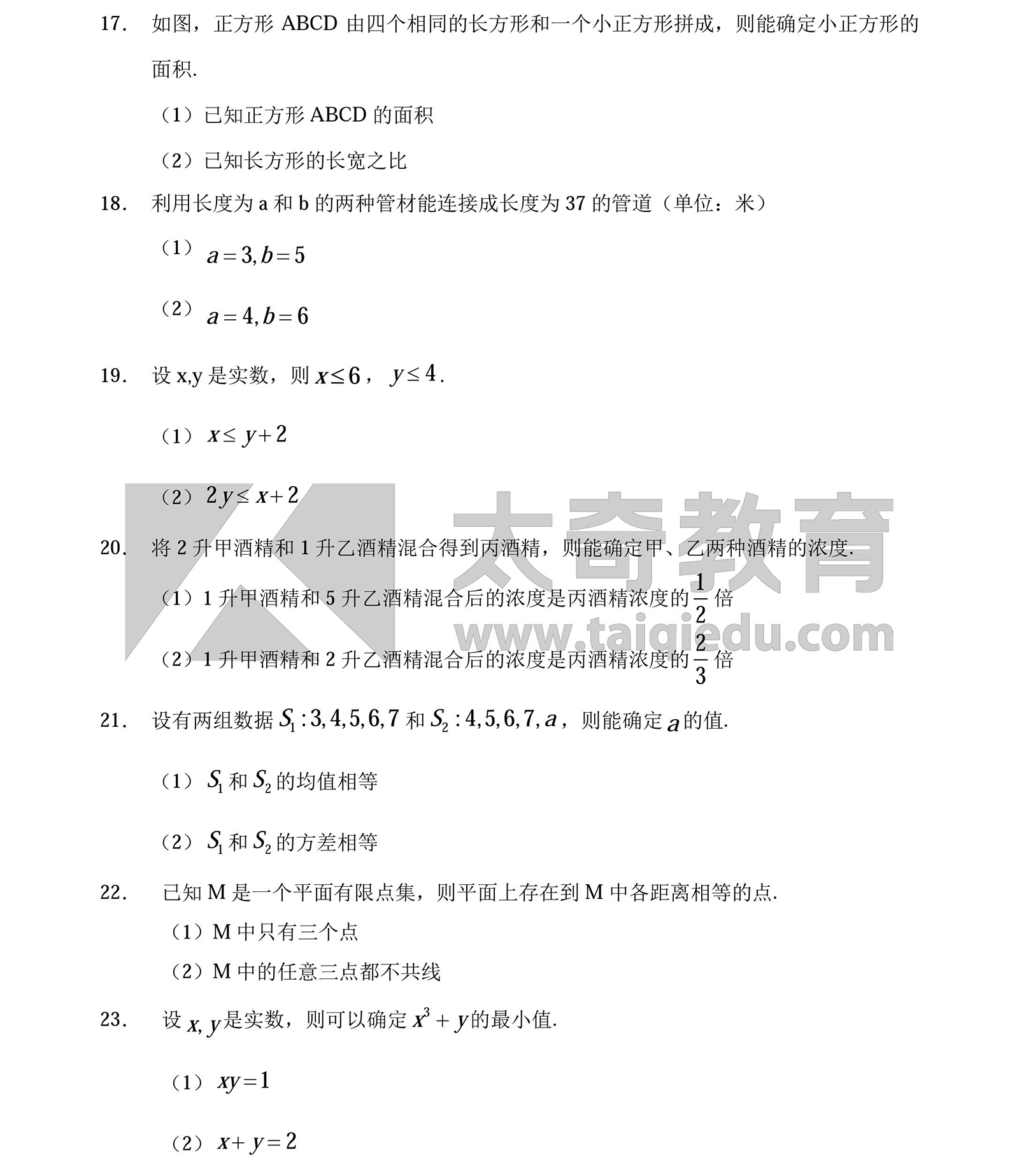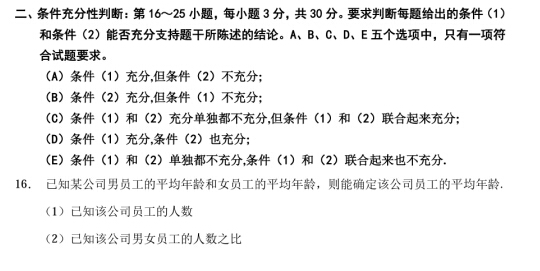 2016MBA管理類(lèi)聯(lián)考數(shù)學(xué)真題:條件充分性判斷