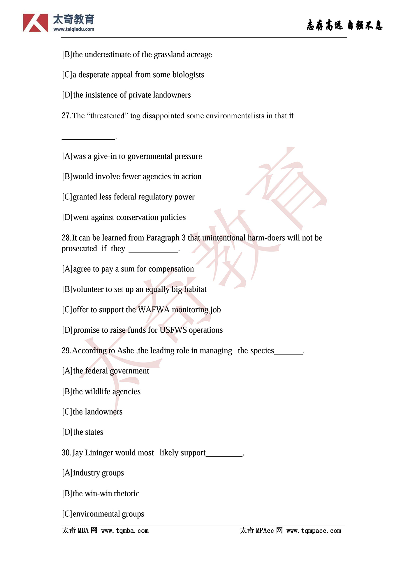 2016MBA管理類聯(lián)考英語(yǔ)(二)真題完整版(5)