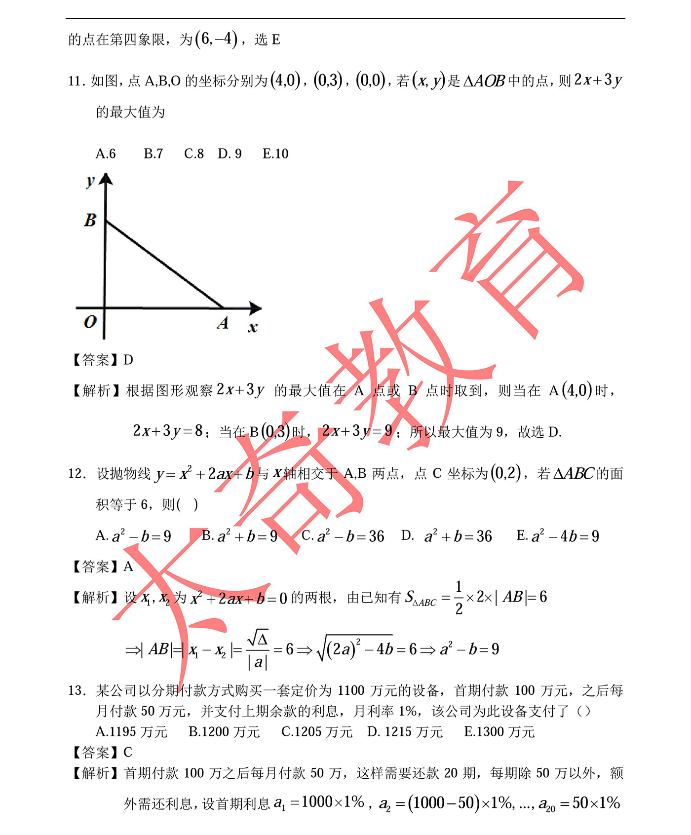 2016管理類聯(lián)考數(shù)學(xué)真題完整解析(太奇官方版)(4)