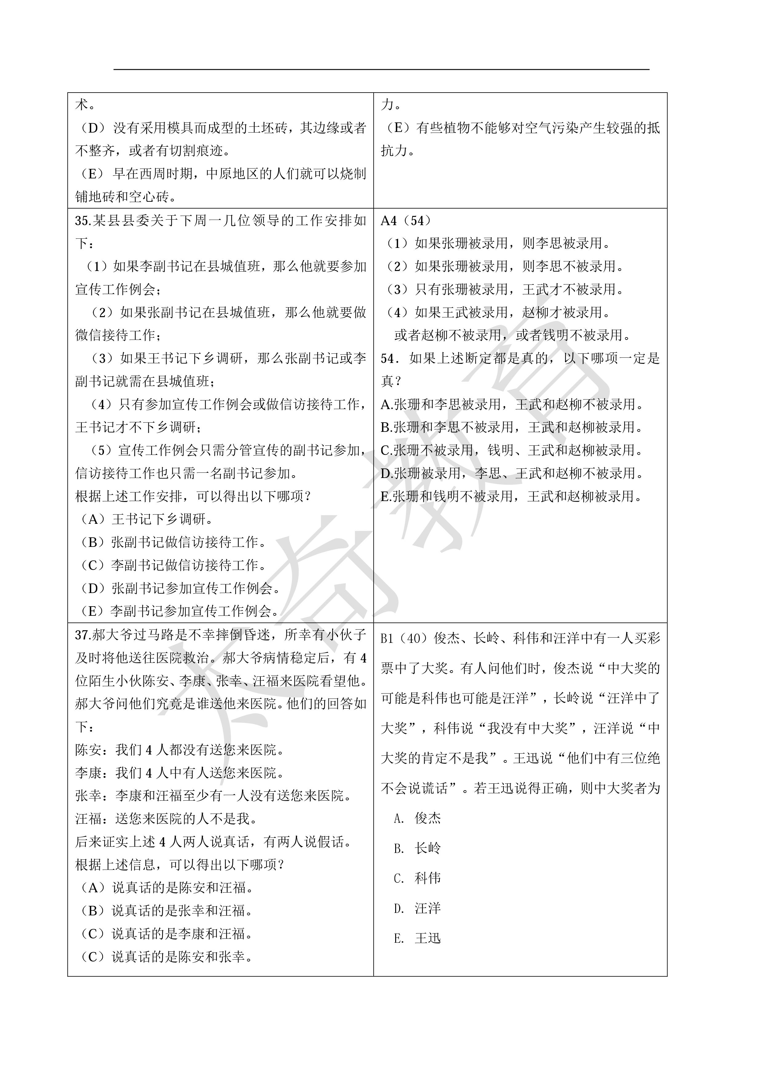 2016MBA管理類聯(lián)考邏輯真題答案(網(wǎng)友版)