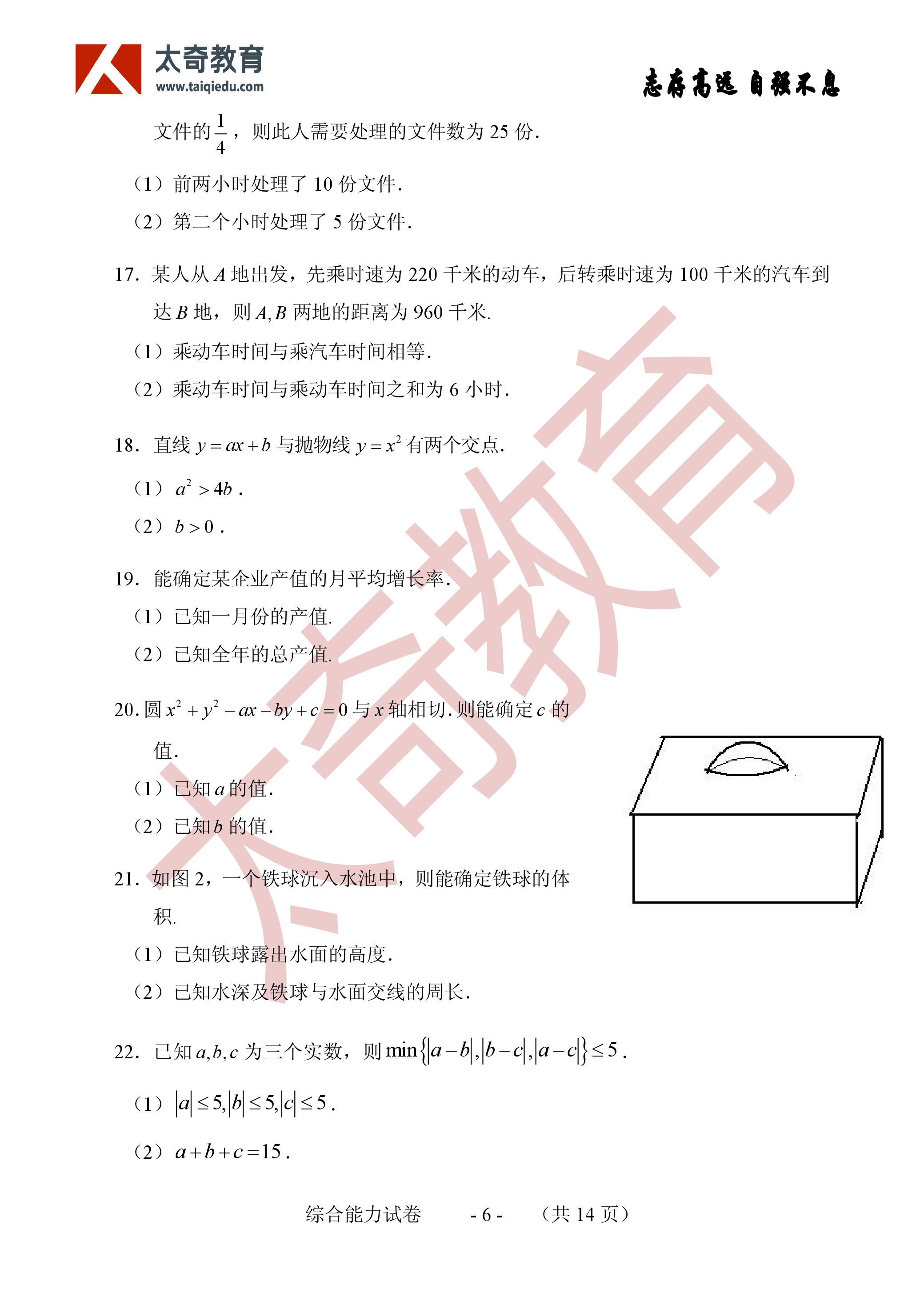 2017年MBA聯考數學真題參考答案:條件判斷(2)