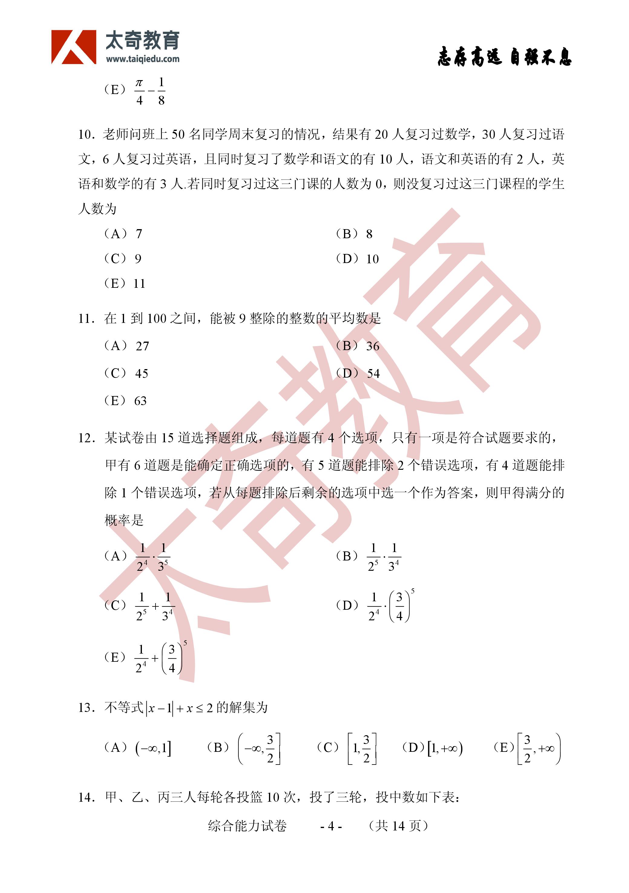 2017年MBA聯(lián)考數(shù)學真題參考答案:問題求解(3)