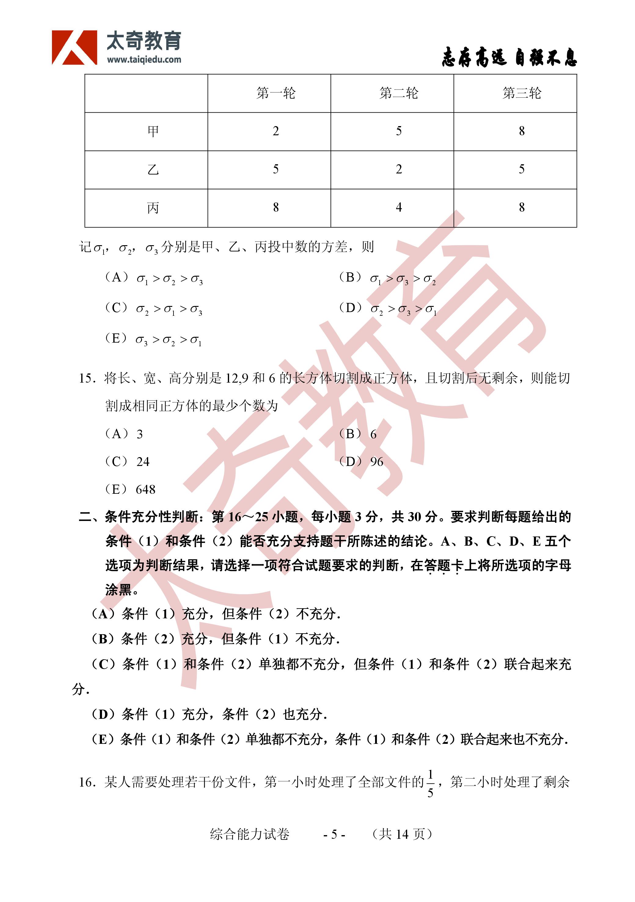 2017年MBA聯(lián)考數(shù)學(xué)真題參考答案:問題求解(4)