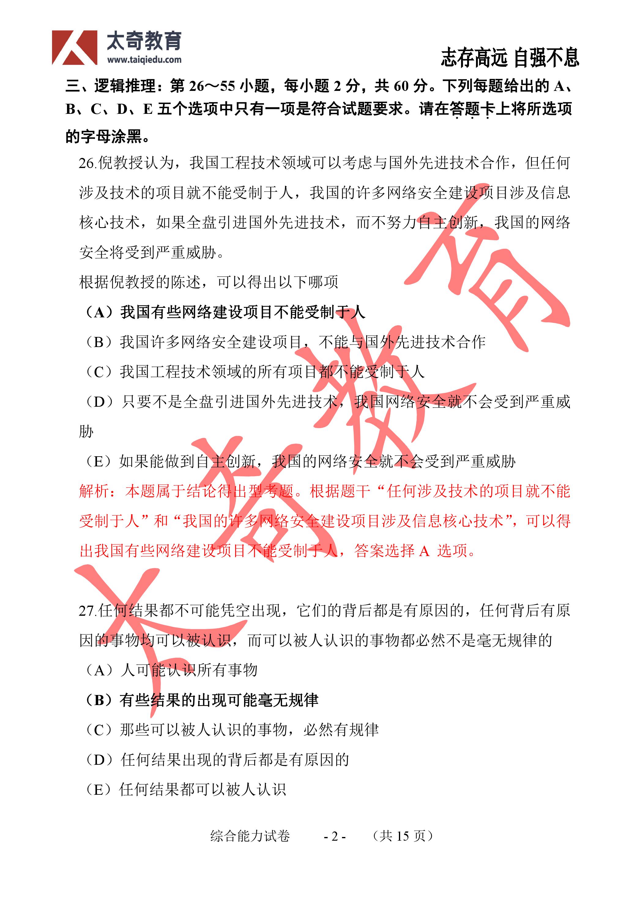 2017年全國碩士研究生招生入學(xué)考試于(12月24日)開考,全部統(tǒng)考科目實行網(wǎng)上評卷。2017年聯(lián)考考研初試將在同時間開考,考的好不好只有看了答案和真題解析才知道。太奇MPAcc/MBA官網(wǎng)將第一時間發(fā)布2017年考研各科目真題答案、視頻解析,請考生及時關(guān)注太奇MPAcc/MBA官網(wǎng)真題解析專題,第一時間獲悉最新聯(lián)考訊息。