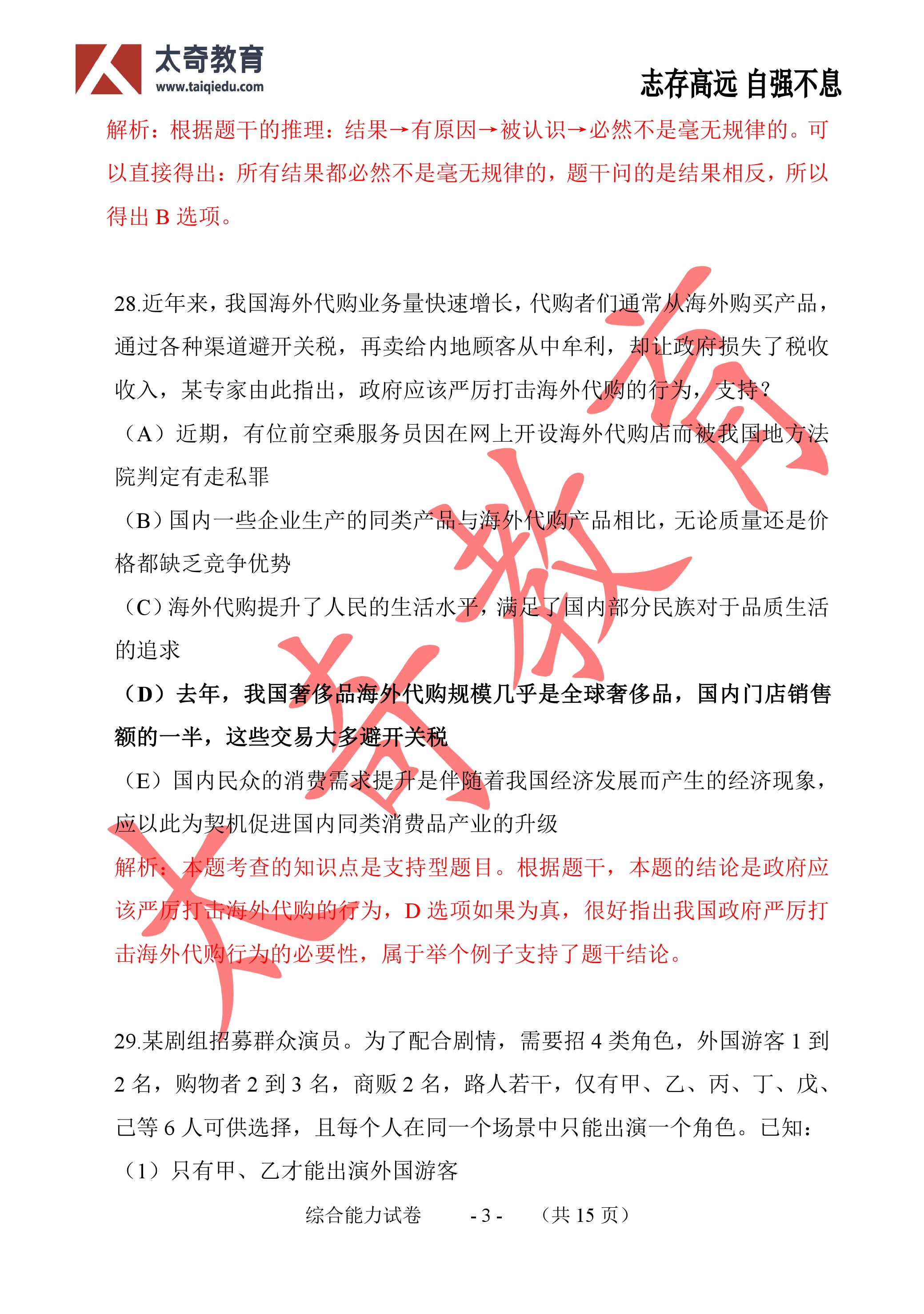 2017年MBA管理類聯(lián)考邏輯真題參考答案