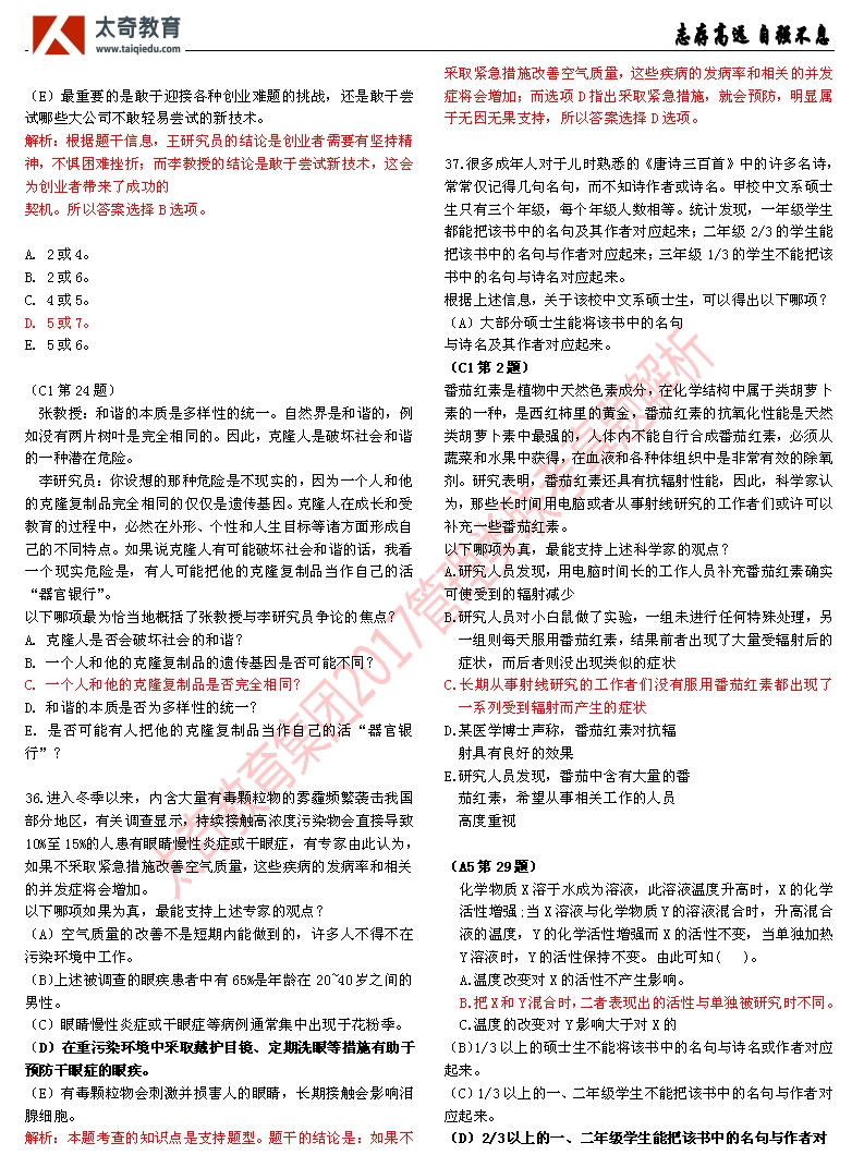 祝賀太奇教育2017管理類聯(lián)考邏輯直接命中46分(4)