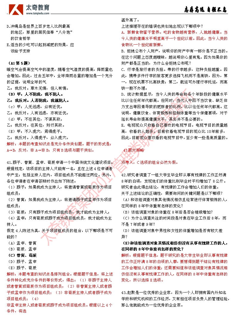 祝賀太奇教育2017管理類(lèi)聯(lián)考邏輯直接命中46分(5)