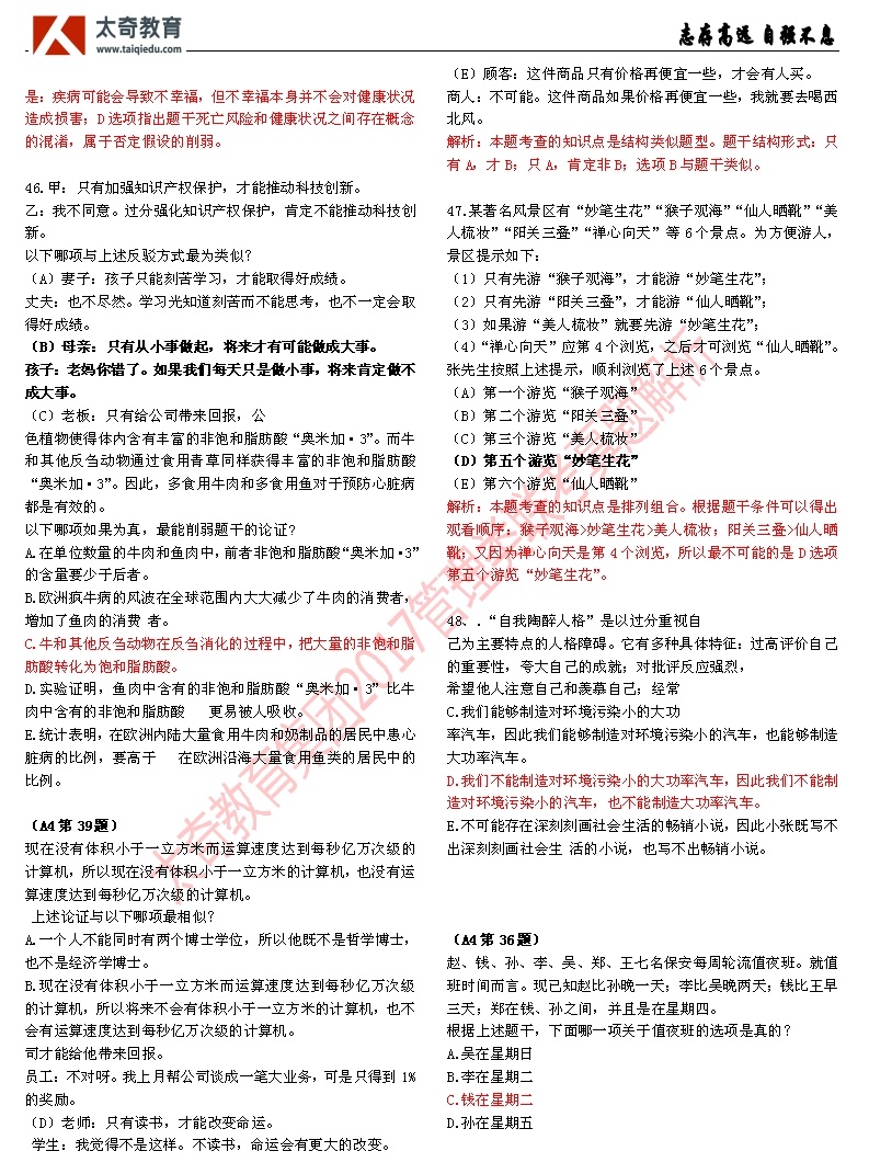 祝賀太奇教育2017管理類聯(lián)考邏輯直接命中46分(7)