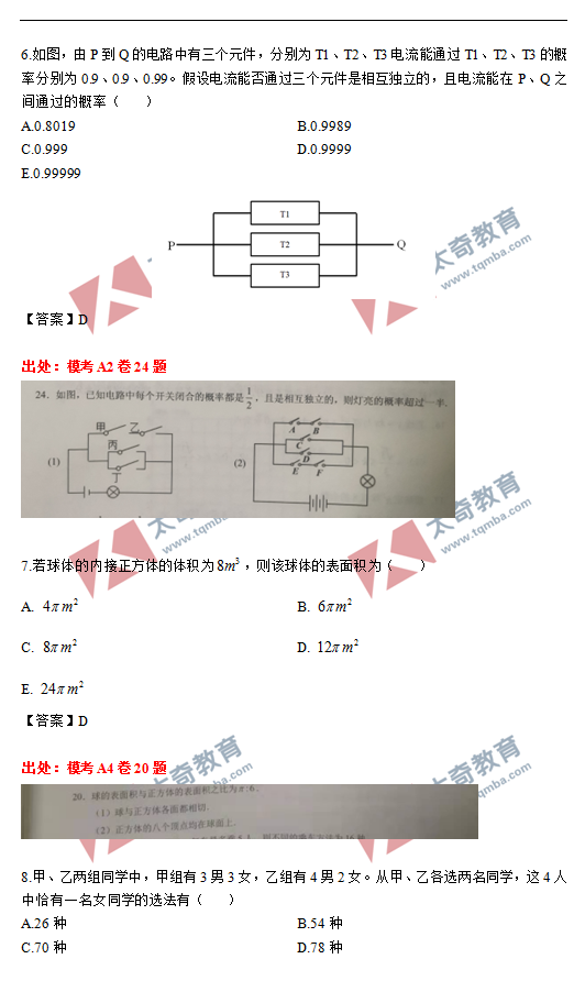 太奇2021年MBA管理類聯(lián)考數(shù)學真題命中對照(3)
