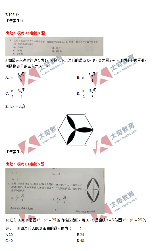 太奇2021年MBA管理類聯(lián)考數(shù)學(xué)真題命中對照(4)