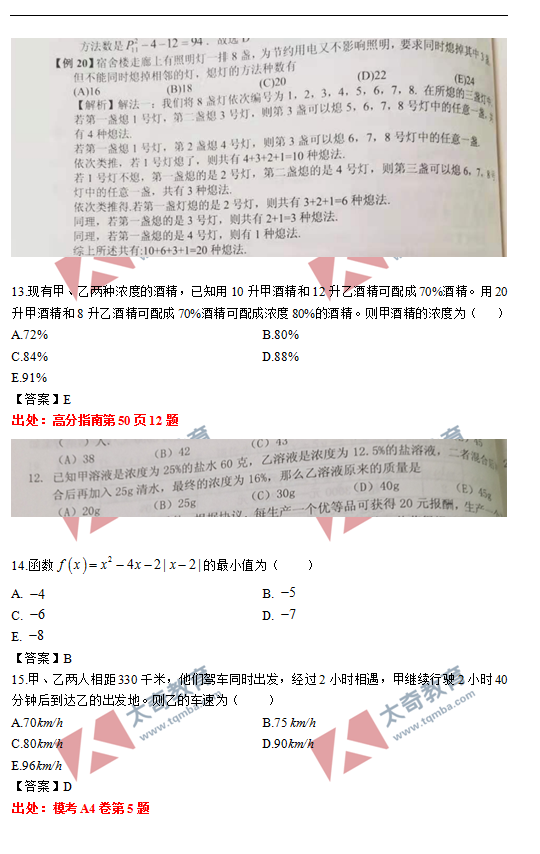 太奇2021年MBA管理類聯(lián)考數(shù)學(xué)真題命中對(duì)照(6)