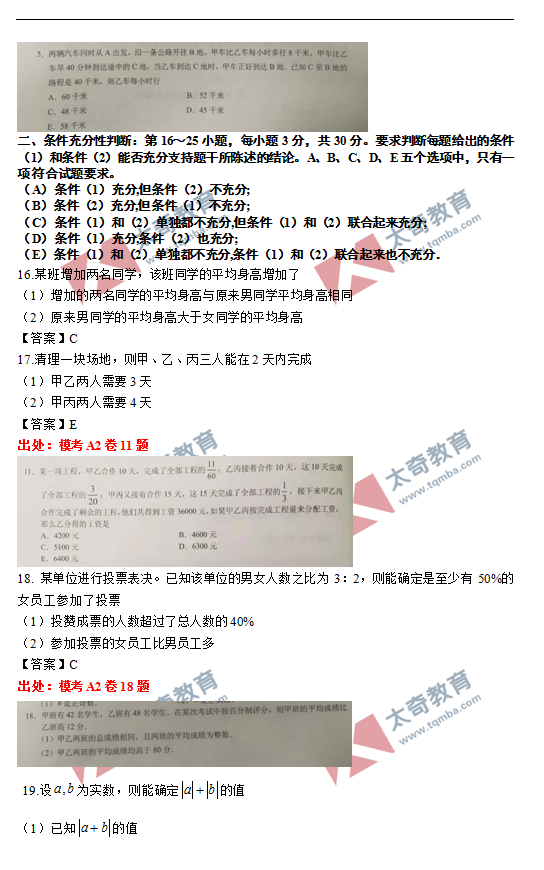 太奇2021年MBA管理類聯(lián)考數(shù)學(xué)真題命中對照(7)