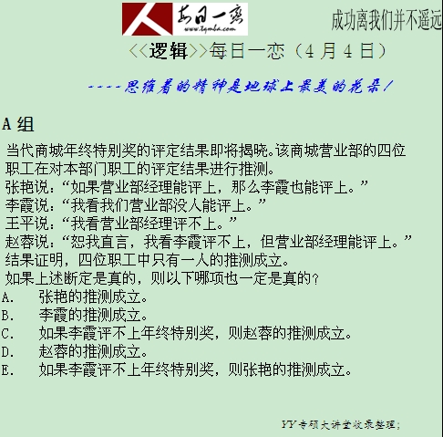 【太奇MBA 2014年4月4日】 MBA邏輯每日一練