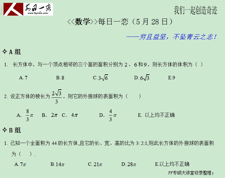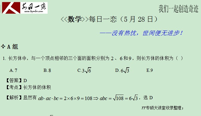 從本周一(5月26日)開(kāi)始,每日一“戀”各科不再發(fā)放詳解,相關(guān)題目解析每周在太奇YY大講堂由老師進(jìn)行統(tǒng)一講解,每周課程在太奇YY大講堂萬(wàn)人備考群進(jìn)行公布,YY群號(hào):9444754 YY聽(tīng)課頻道:57378066