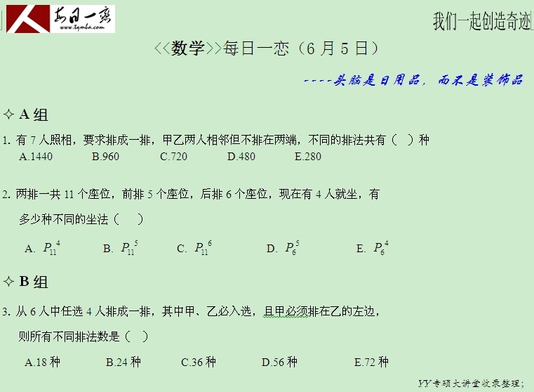 【太奇MBA 2014年6月5日】 MBA數(shù)學(xué)每日一練