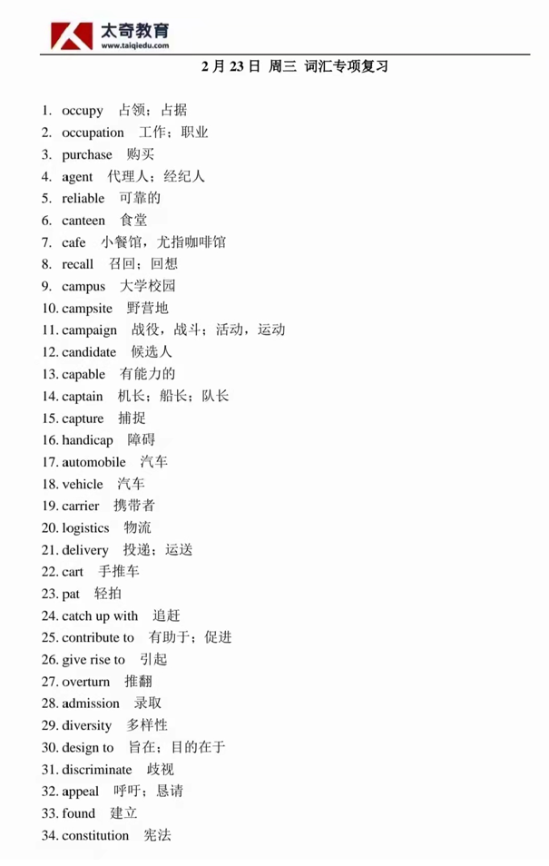 2月23日詞匯專(zhuān)項(xiàng)練習(xí)