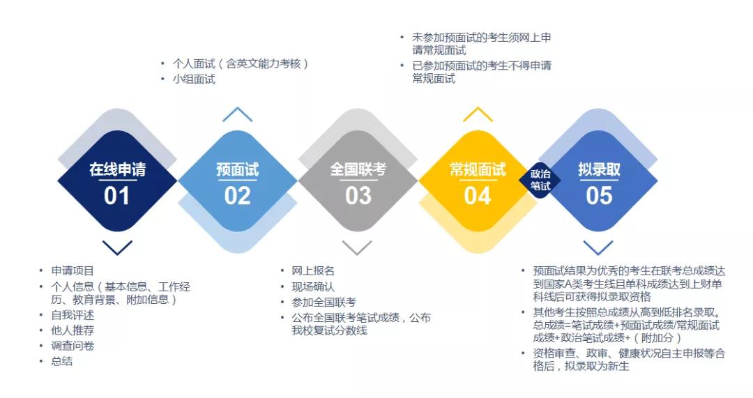 2)預(yù)面試良好。預(yù)面試獲得良好的考生給予附加分20分或附加分10分。當(dāng)年聯(lián)考總成績(jī)達(dá)到國(guó)家A類線且單科成績(jī)達(dá)到上財(cái)單科線,附加分計(jì)入總成績(jī)進(jìn)行從高到低排名錄取。