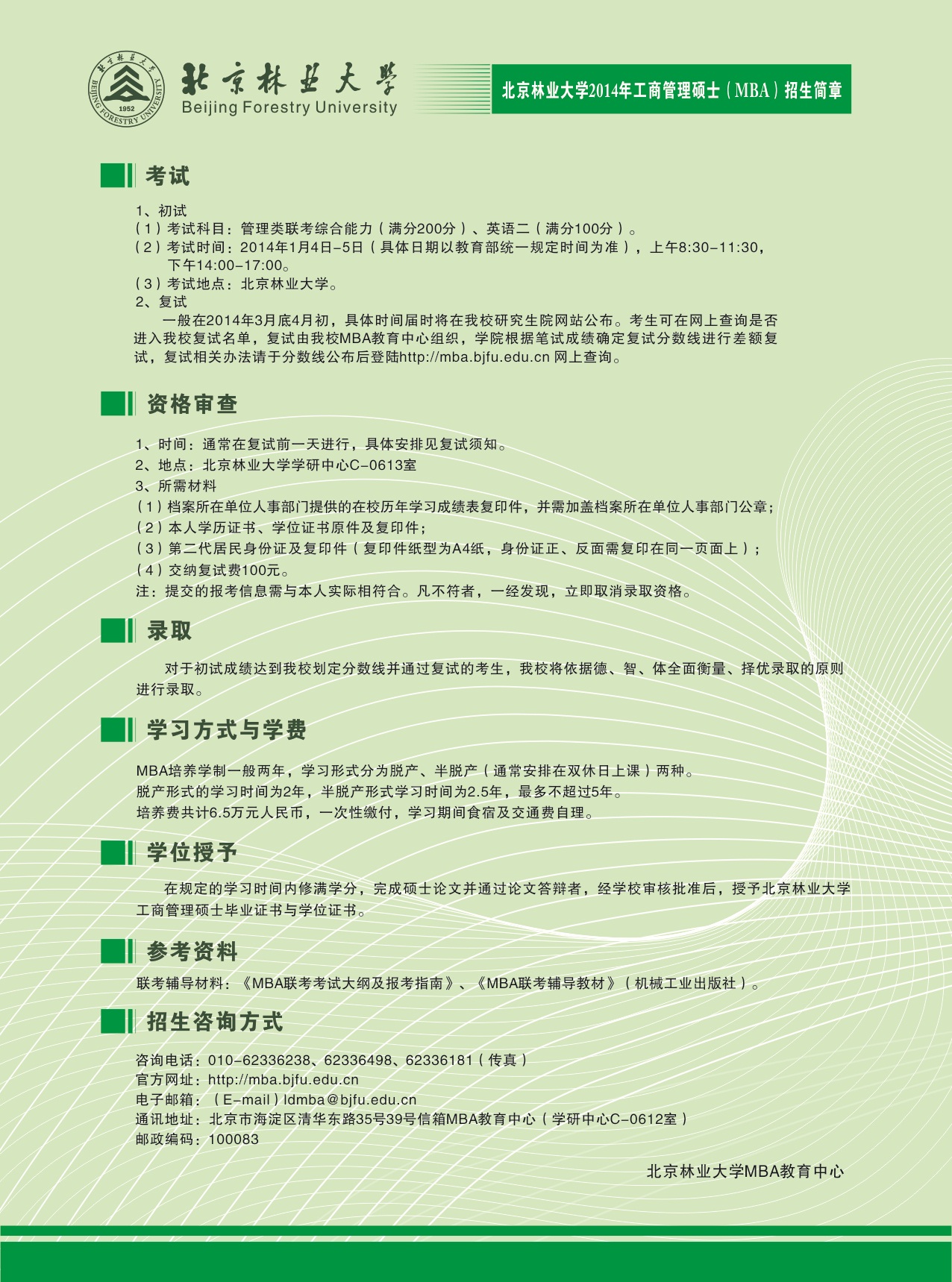 2014年北京林業(yè)大學工商管理碩士招生簡章