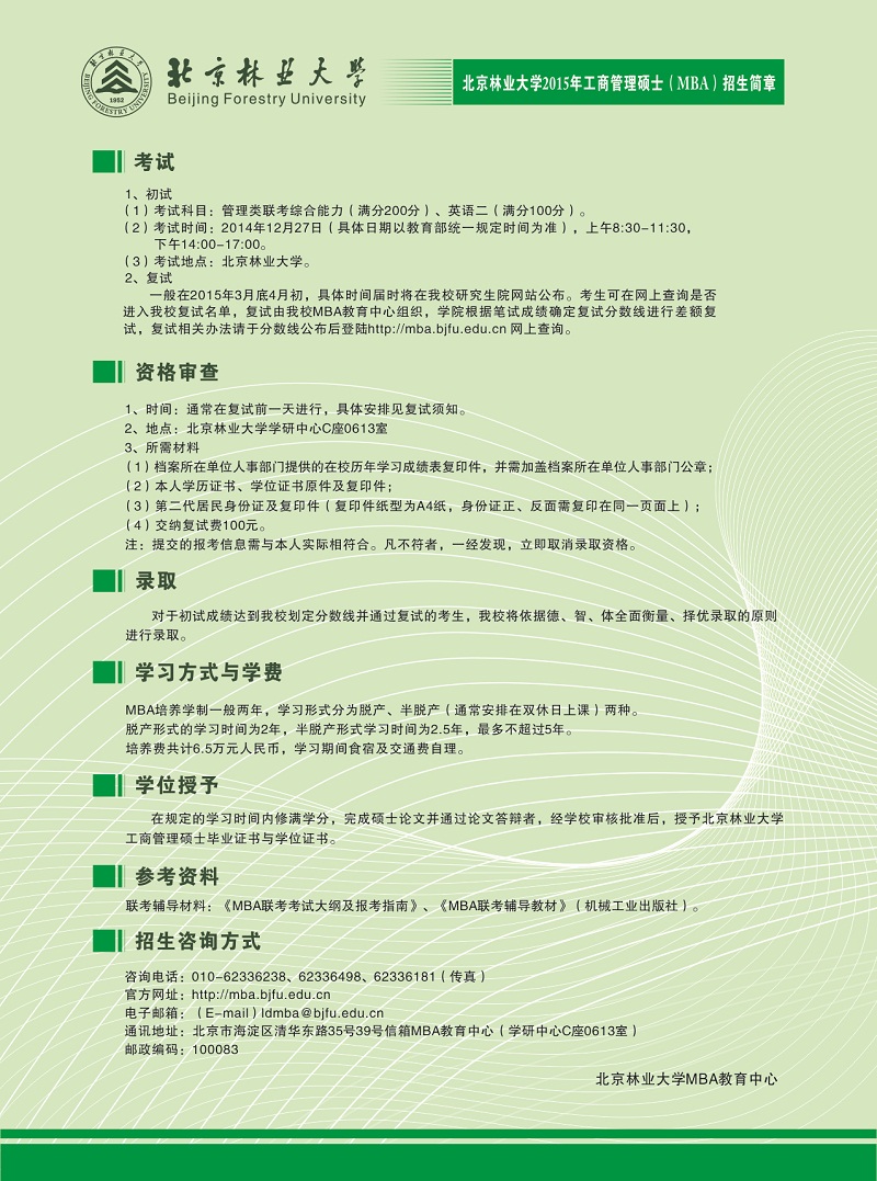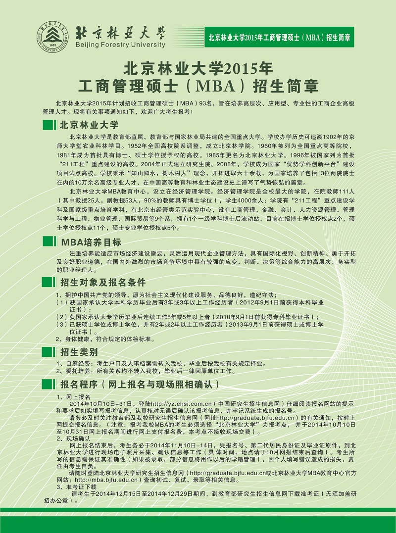 北京林業(yè)大學(xué)2015MBA招生簡章
