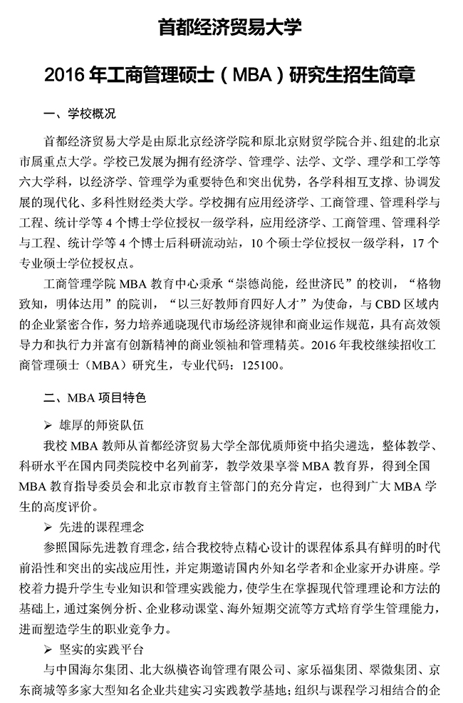 首都經(jīng)濟(jì)貿(mào)易大學(xué)2016年MBA招生簡(jiǎn)章